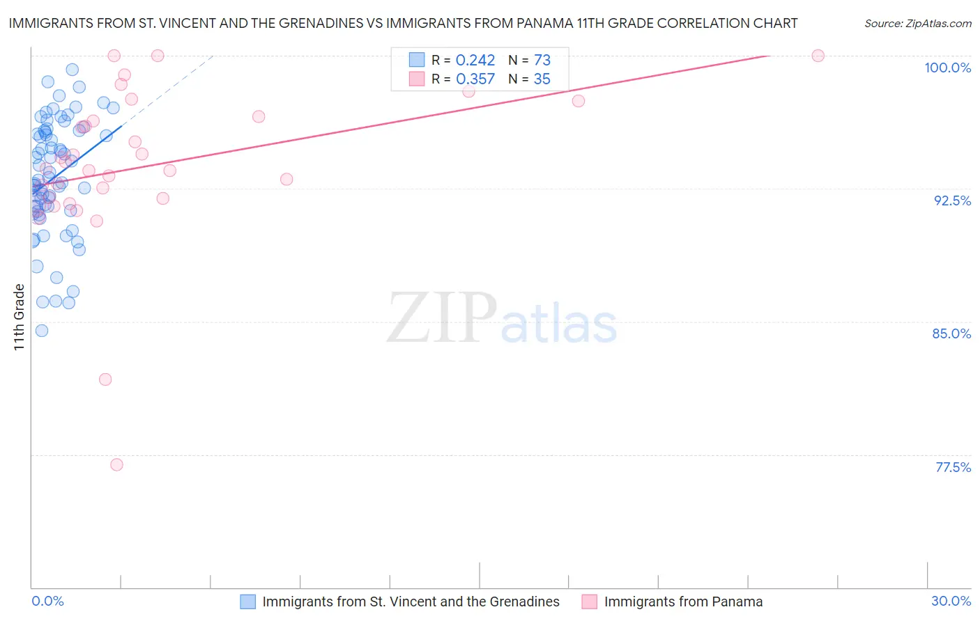 Immigrants from St. Vincent and the Grenadines vs Immigrants from Panama 11th Grade Correlation Chart