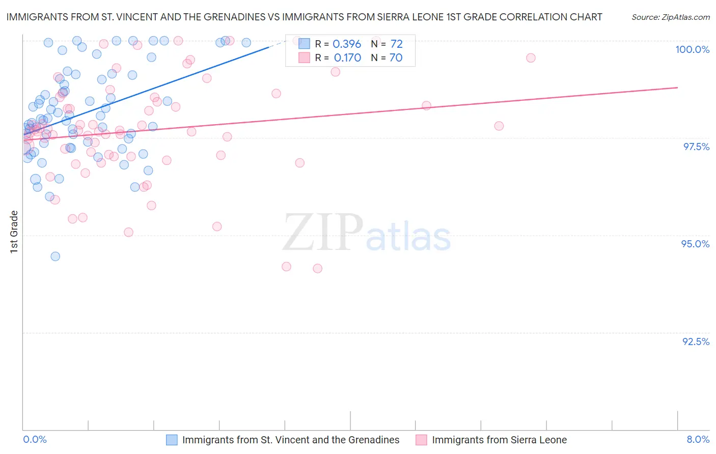 Immigrants from St. Vincent and the Grenadines vs Immigrants from Sierra Leone 1st Grade Correlation Chart