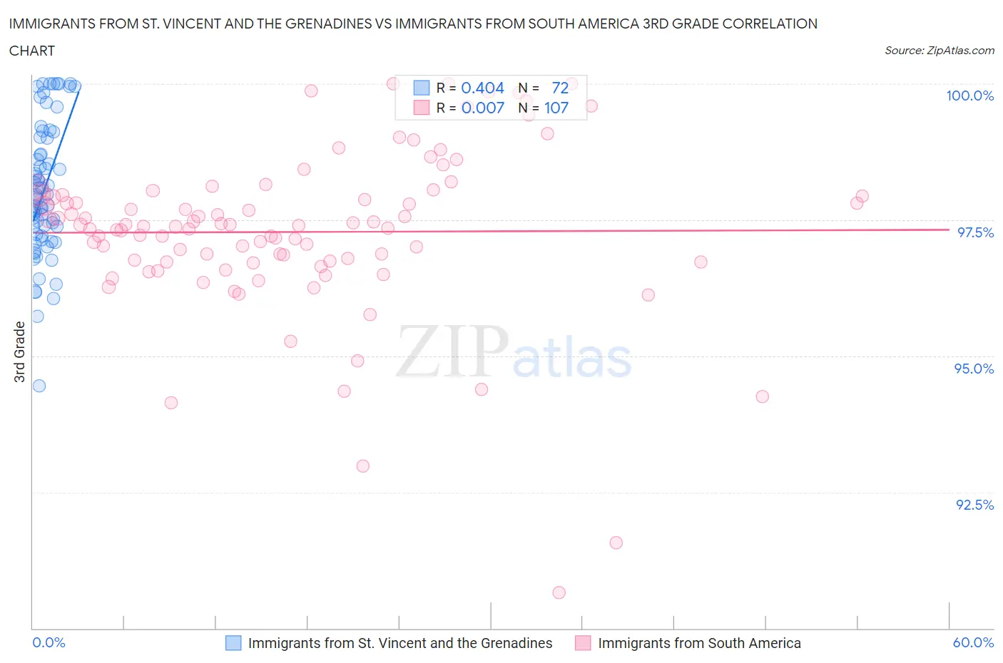 Immigrants from St. Vincent and the Grenadines vs Immigrants from South America 3rd Grade Correlation Chart