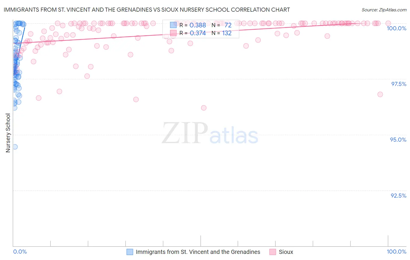 Immigrants from St. Vincent and the Grenadines vs Sioux Nursery School Correlation Chart