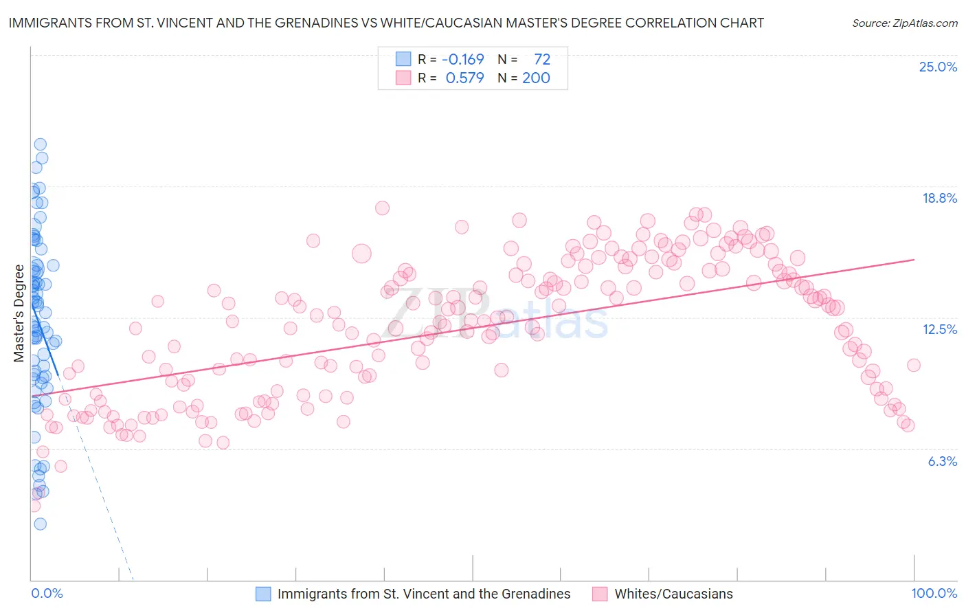 Immigrants from St. Vincent and the Grenadines vs White/Caucasian Master's Degree Correlation Chart