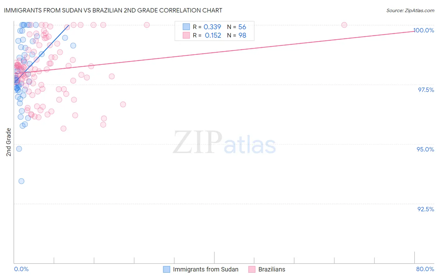 Immigrants from Sudan vs Brazilian 2nd Grade Correlation Chart