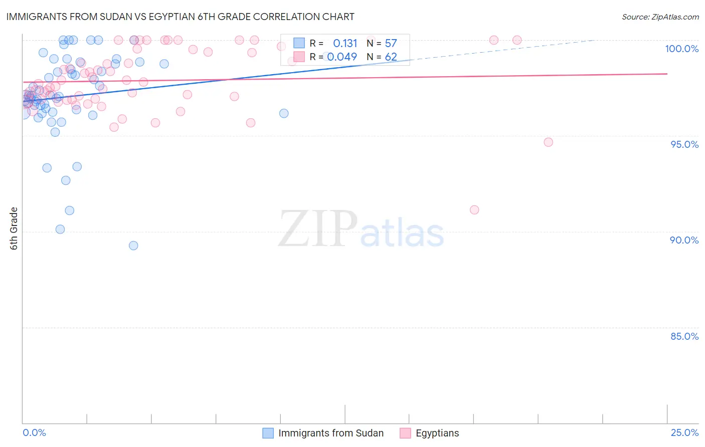 Immigrants from Sudan vs Egyptian 6th Grade Correlation Chart
