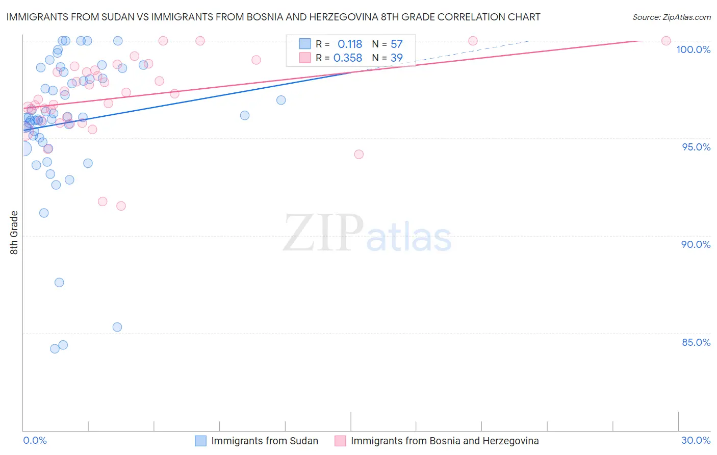 Immigrants from Sudan vs Immigrants from Bosnia and Herzegovina 8th Grade Correlation Chart