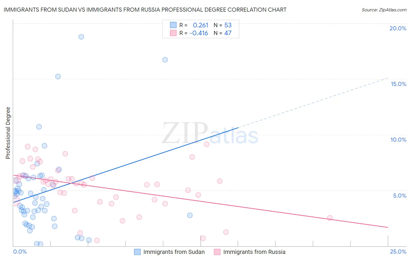 Immigrants from Sudan vs Immigrants from Russia Professional Degree Correlation Chart