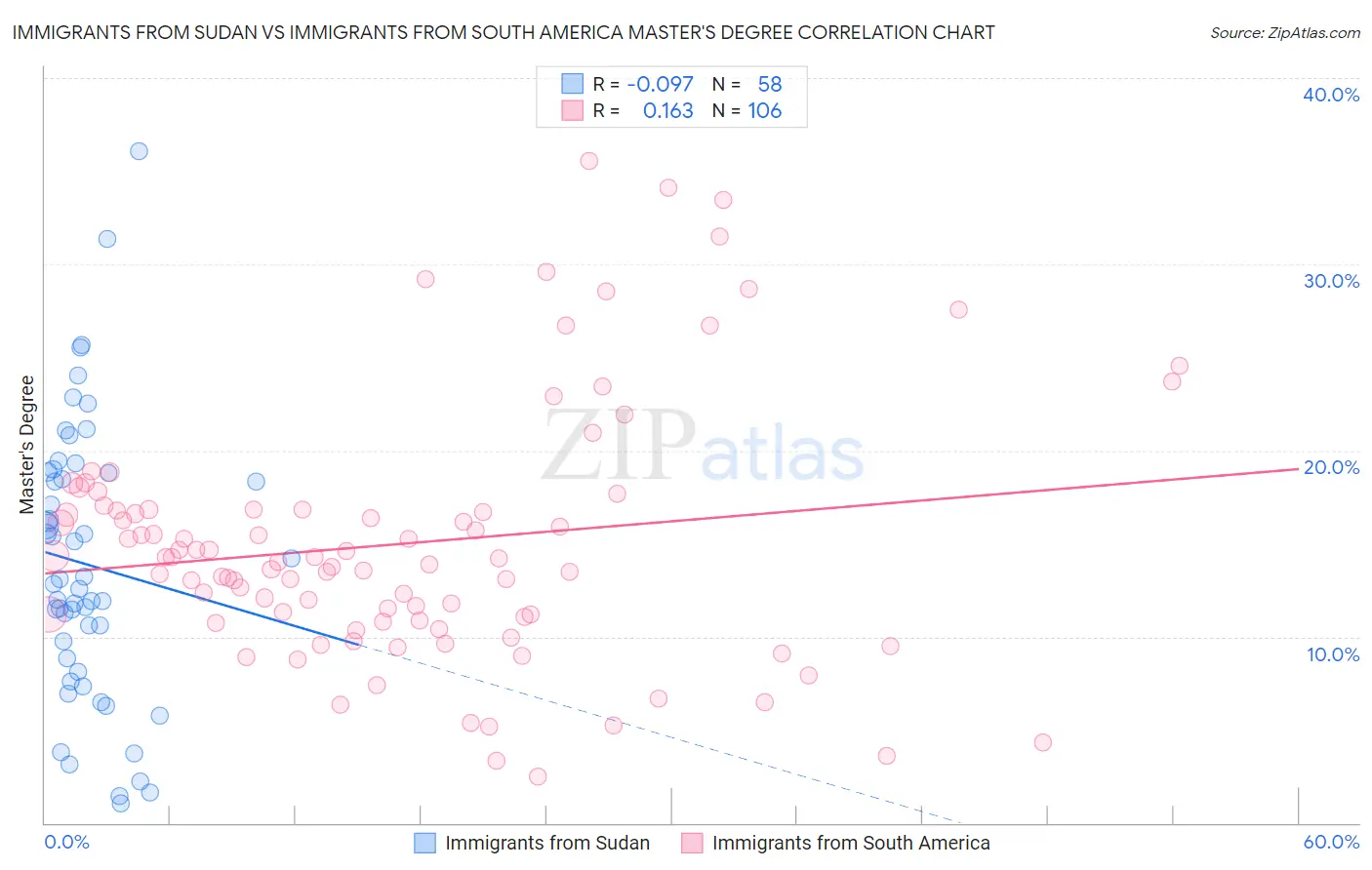 Immigrants from Sudan vs Immigrants from South America Master's Degree Correlation Chart
