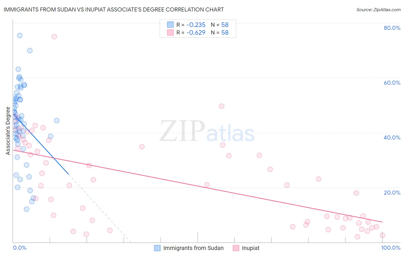 Immigrants from Sudan vs Inupiat Associate's Degree Correlation Chart