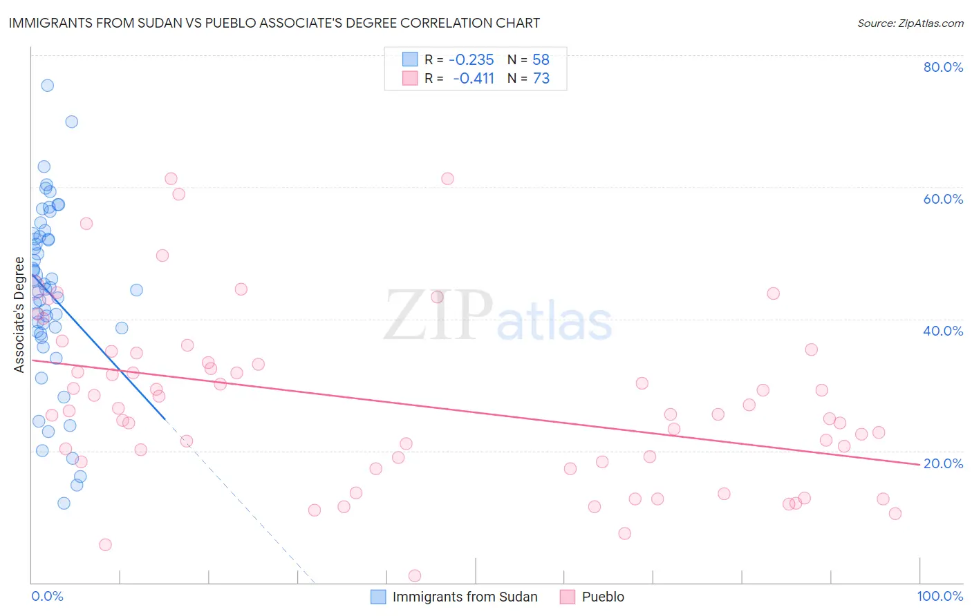 Immigrants from Sudan vs Pueblo Associate's Degree Correlation Chart