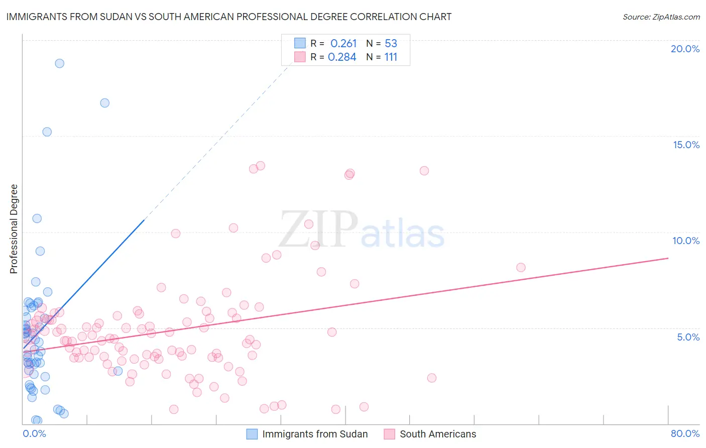Immigrants from Sudan vs South American Professional Degree Correlation Chart