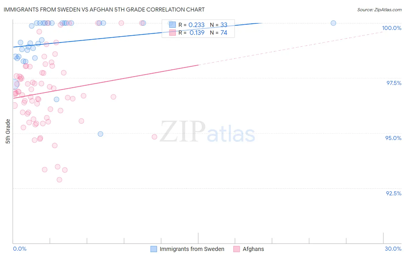Immigrants from Sweden vs Afghan 5th Grade Correlation Chart