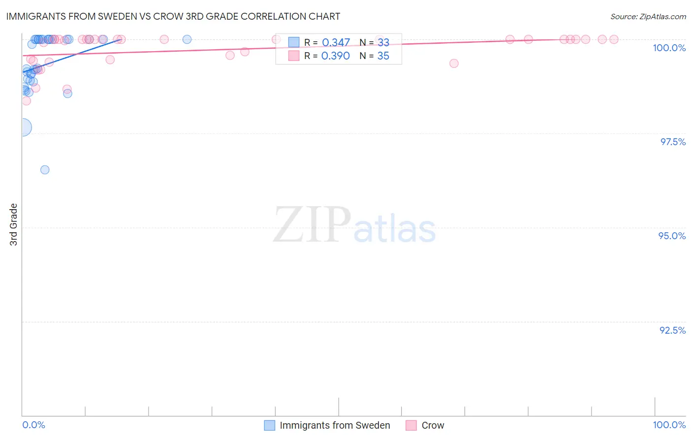 Immigrants from Sweden vs Crow 3rd Grade Correlation Chart