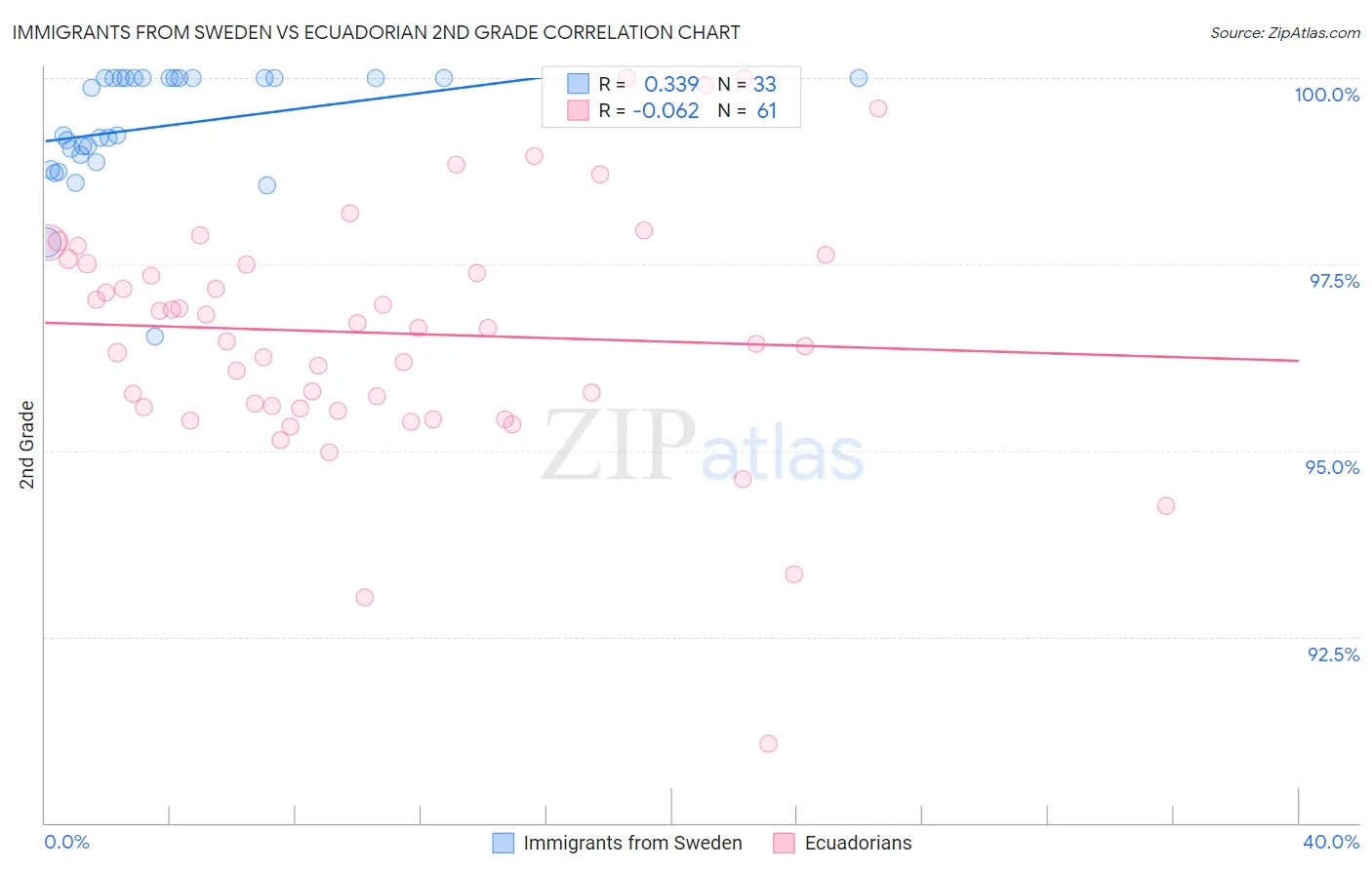 Immigrants from Sweden vs Ecuadorian 2nd Grade Correlation Chart