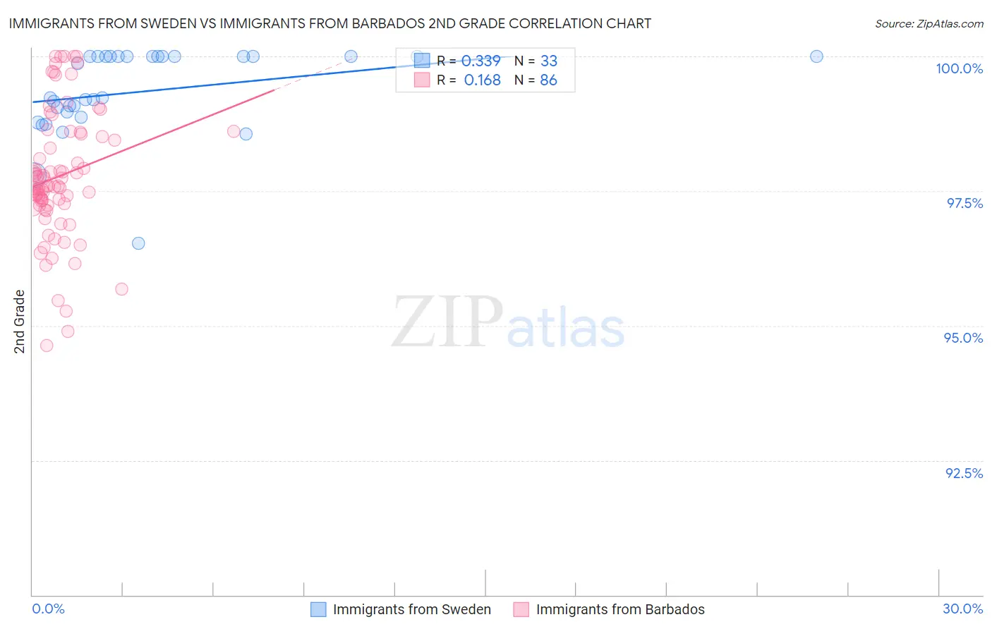 Immigrants from Sweden vs Immigrants from Barbados 2nd Grade Correlation Chart