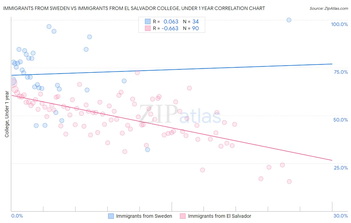 Immigrants from Sweden vs Immigrants from El Salvador College, Under 1 year Correlation Chart