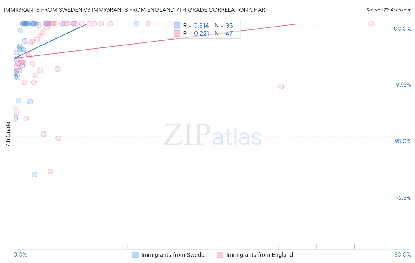 Immigrants from Sweden vs Immigrants from England 7th Grade Correlation Chart