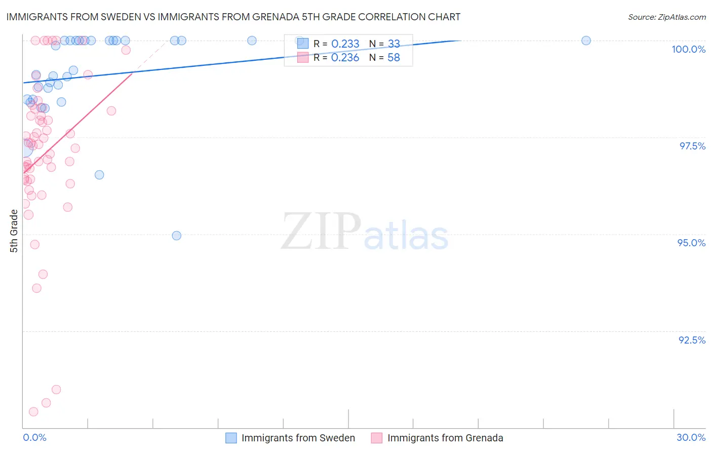 Immigrants from Sweden vs Immigrants from Grenada 5th Grade Correlation Chart