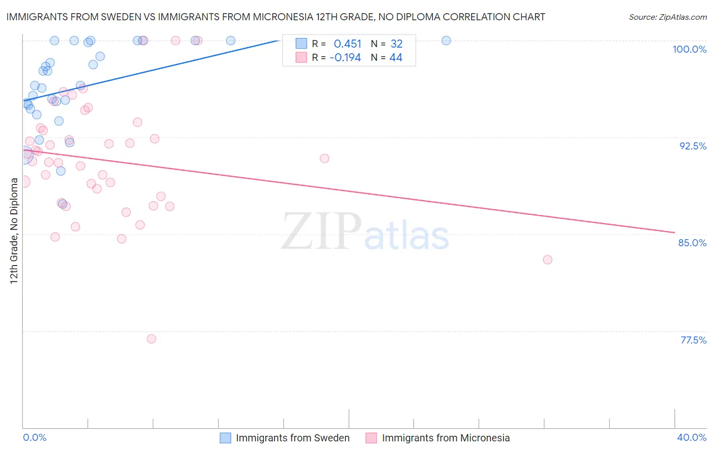 Immigrants from Sweden vs Immigrants from Micronesia 12th Grade, No Diploma Correlation Chart