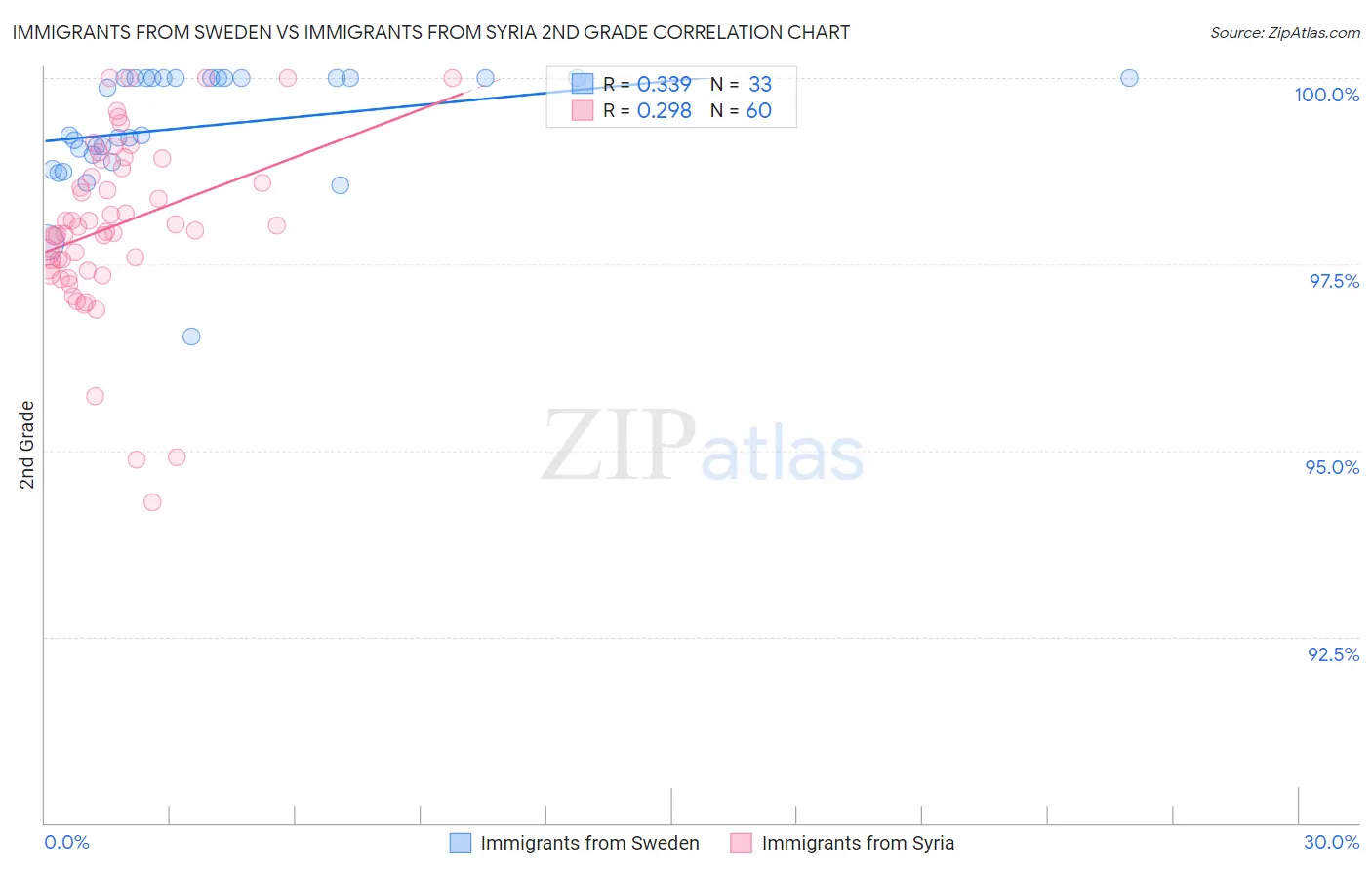 Immigrants from Sweden vs Immigrants from Syria 2nd Grade Correlation Chart