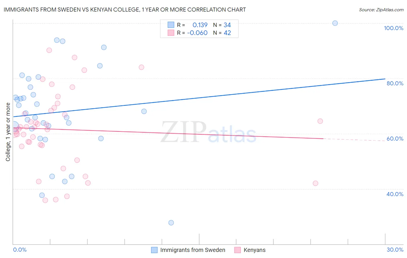 Immigrants from Sweden vs Kenyan College, 1 year or more Correlation Chart