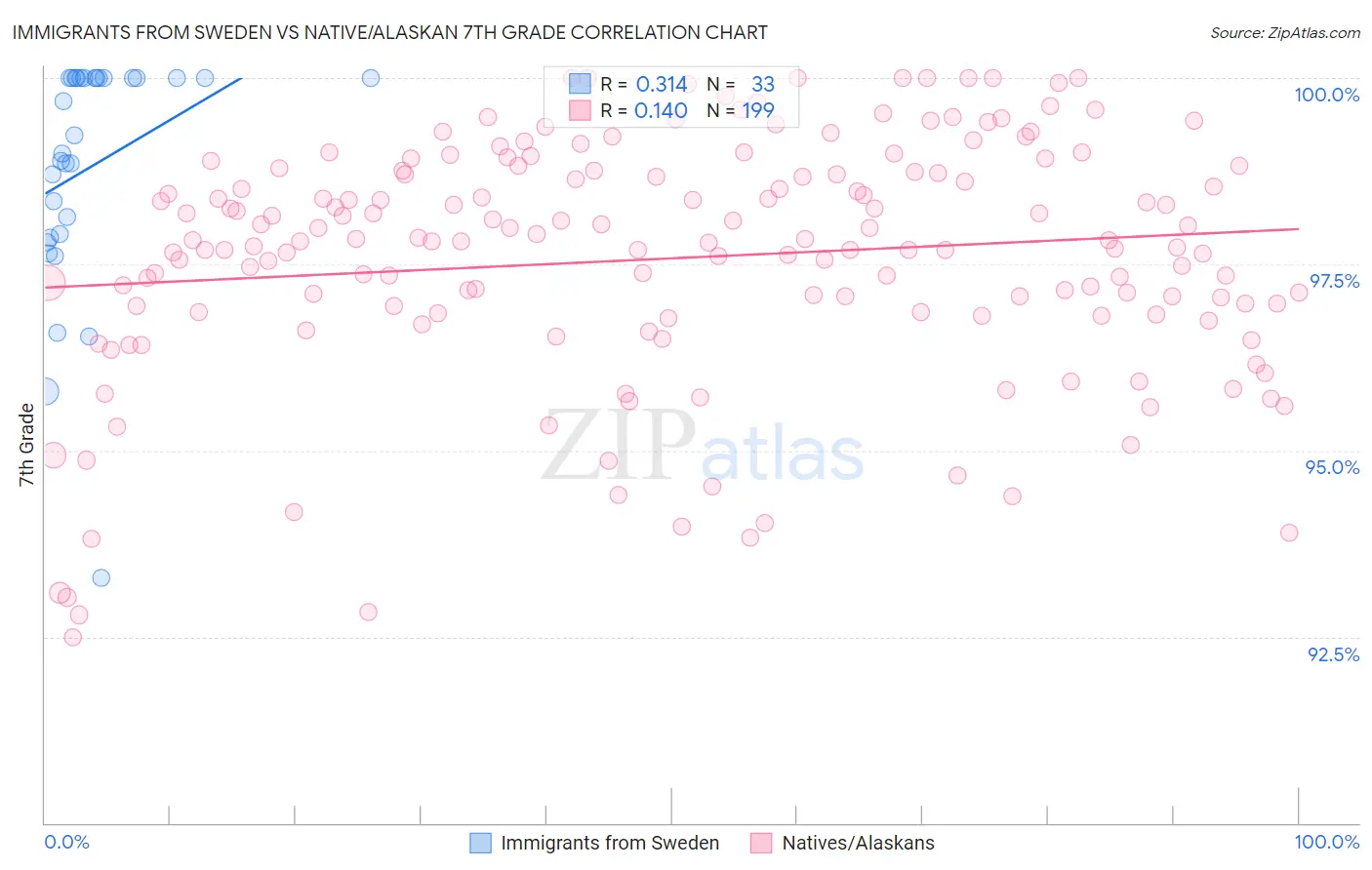 Immigrants from Sweden vs Native/Alaskan 7th Grade