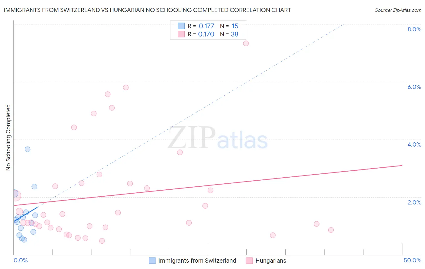 Immigrants from Switzerland vs Hungarian No Schooling Completed Correlation Chart
