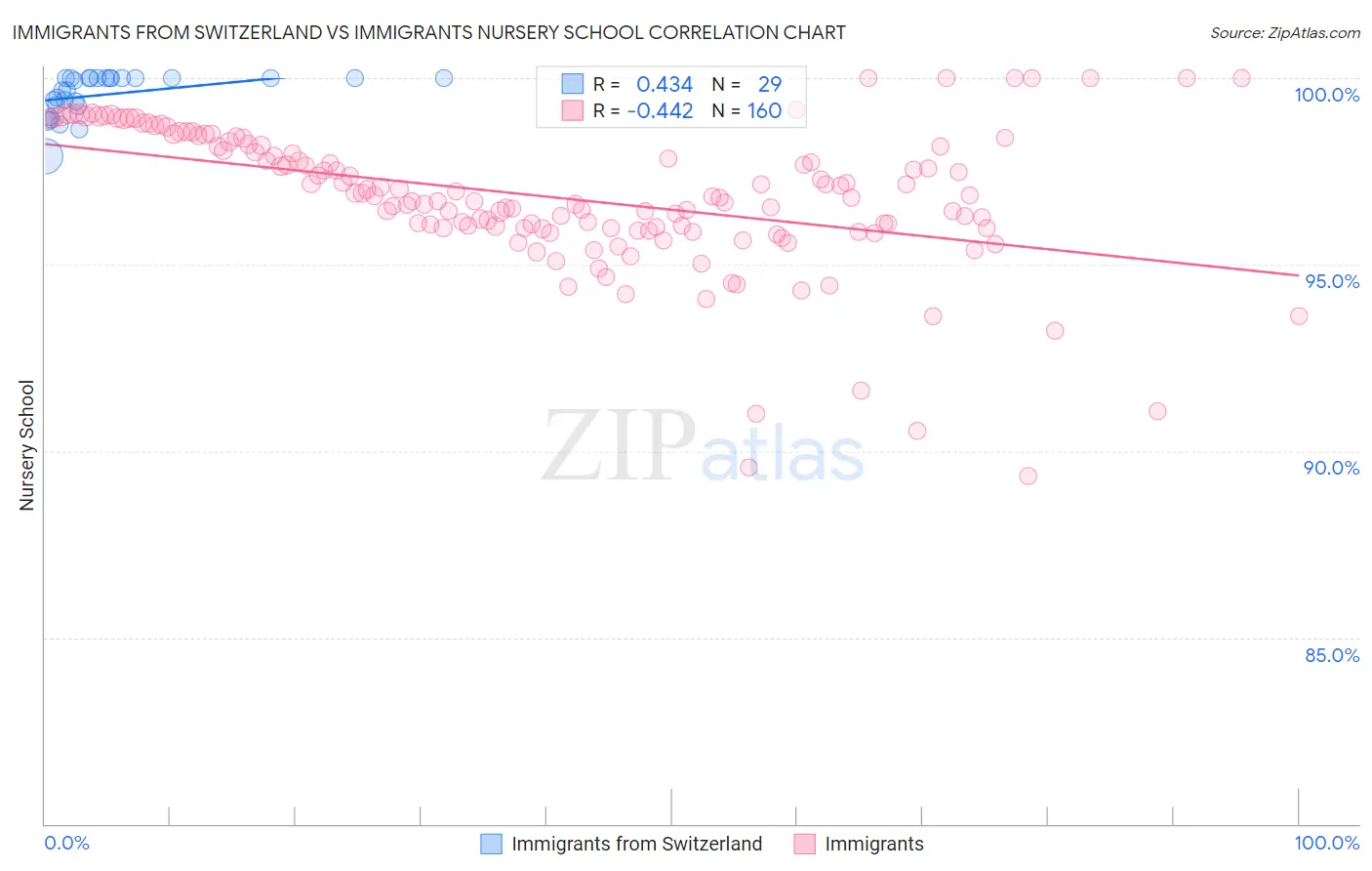 Immigrants from Switzerland vs Immigrants Nursery School Correlation Chart