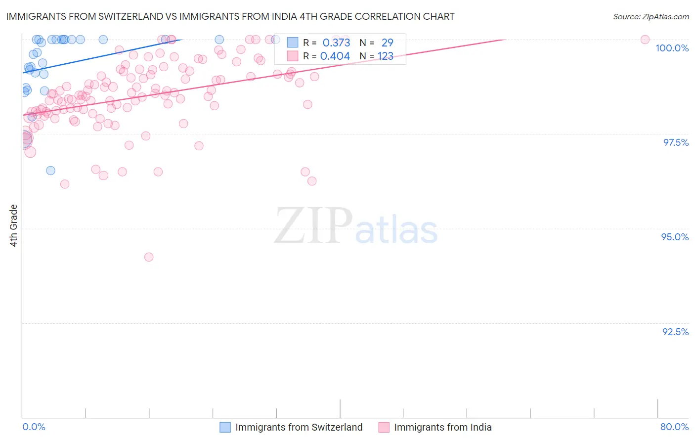 Immigrants from Switzerland vs Immigrants from India 4th Grade