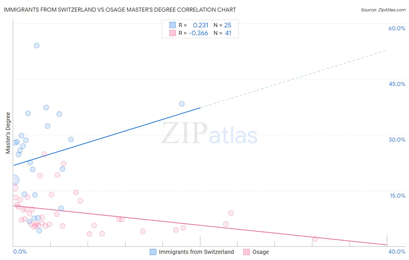 Immigrants from Switzerland vs Osage Master's Degree Correlation Chart