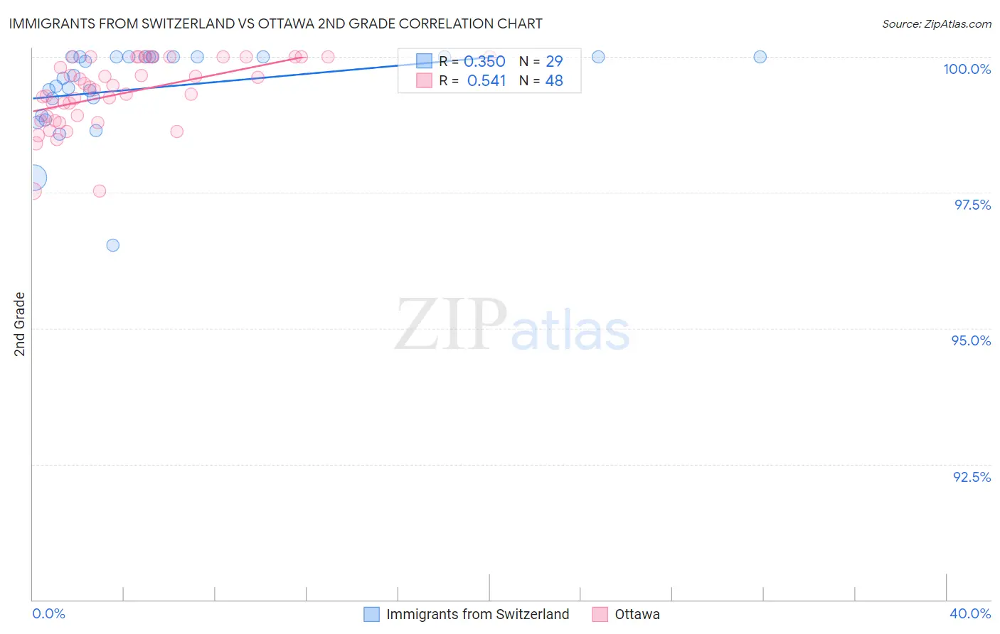 Immigrants from Switzerland vs Ottawa 2nd Grade Correlation Chart