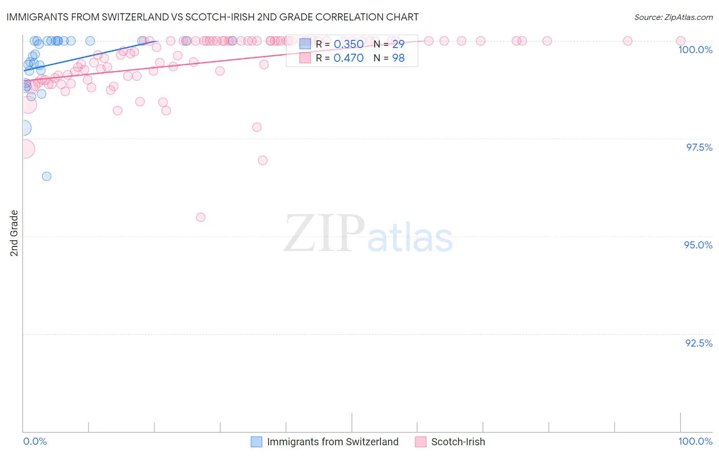 Immigrants from Switzerland vs Scotch-Irish 2nd Grade Correlation Chart