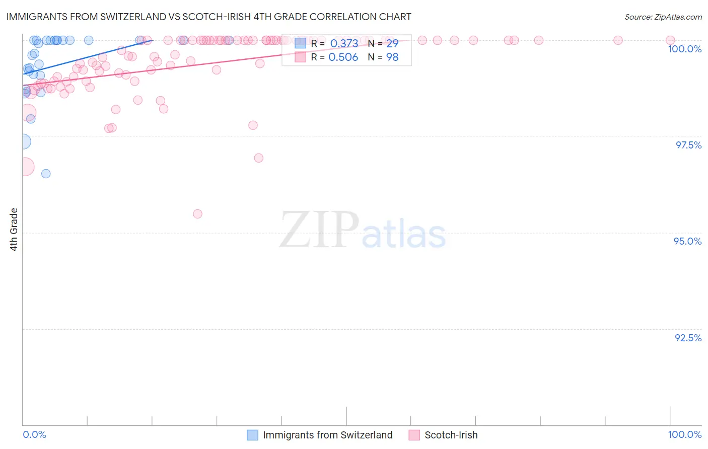 Immigrants from Switzerland vs Scotch-Irish 4th Grade Correlation Chart