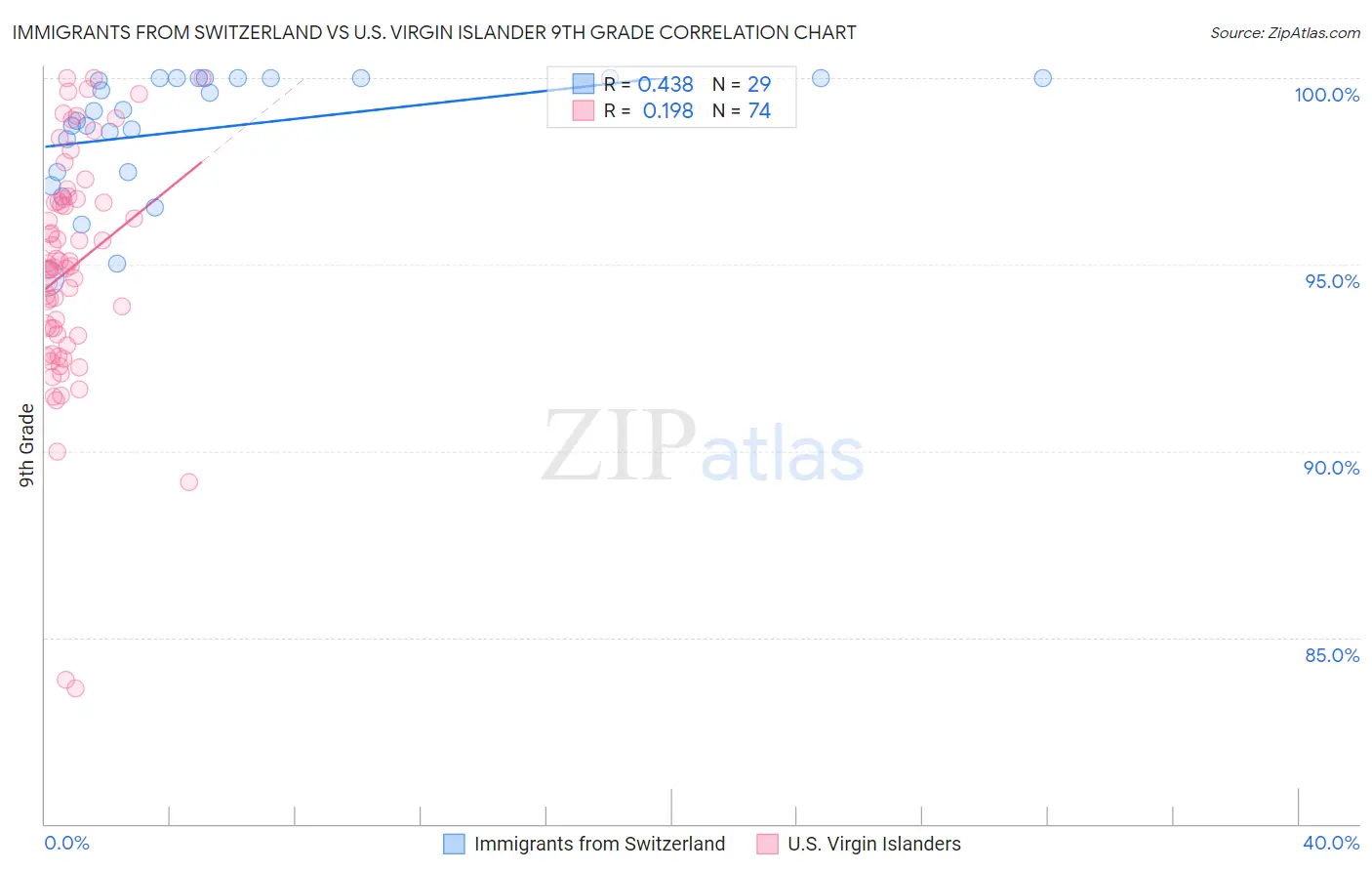 Immigrants from Switzerland vs U.S. Virgin Islander 9th Grade Correlation Chart