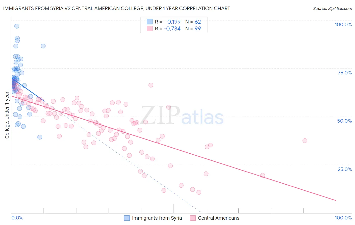 Immigrants from Syria vs Central American College, Under 1 year Correlation Chart