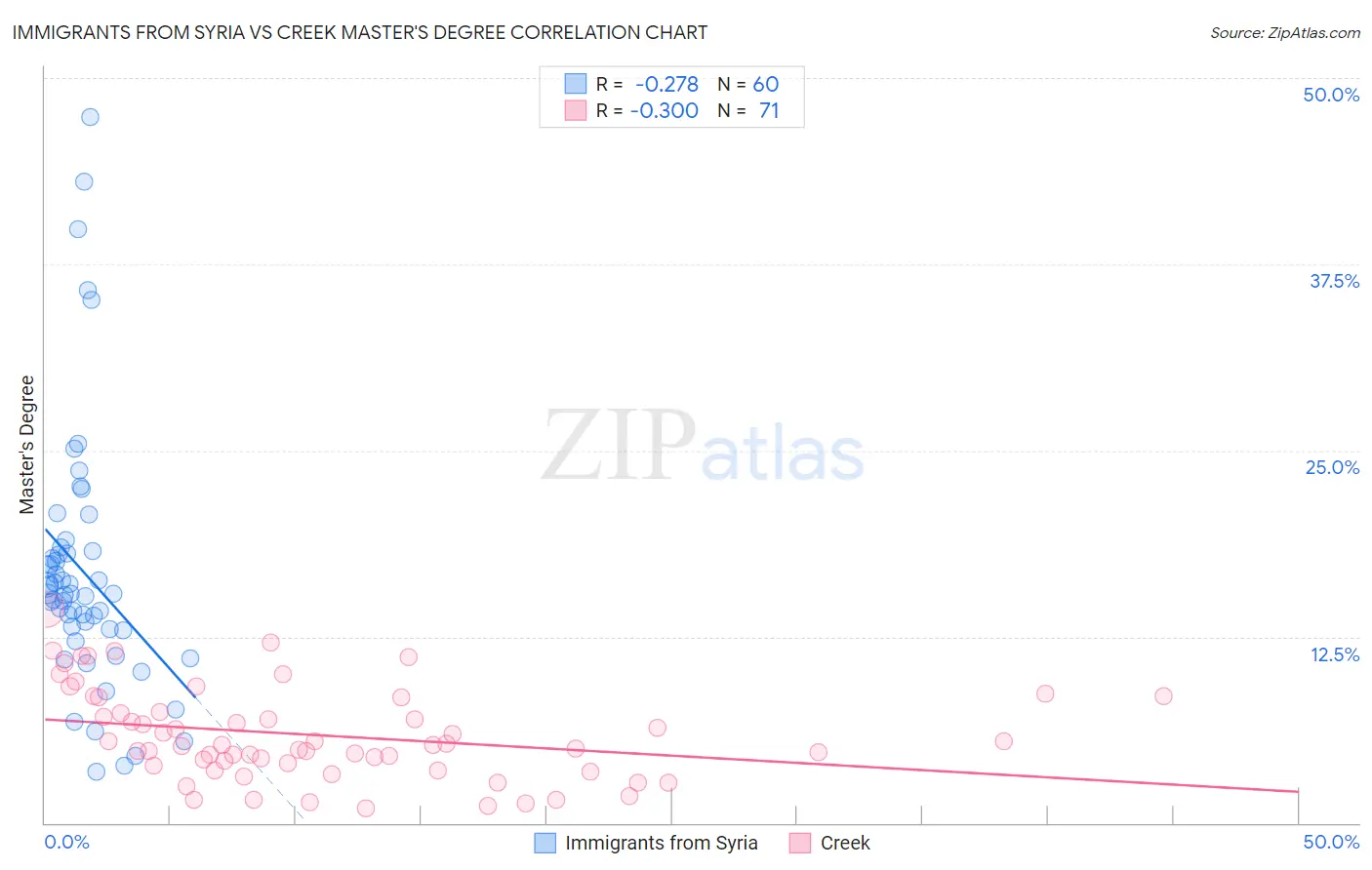 Immigrants from Syria vs Creek Master's Degree Correlation Chart