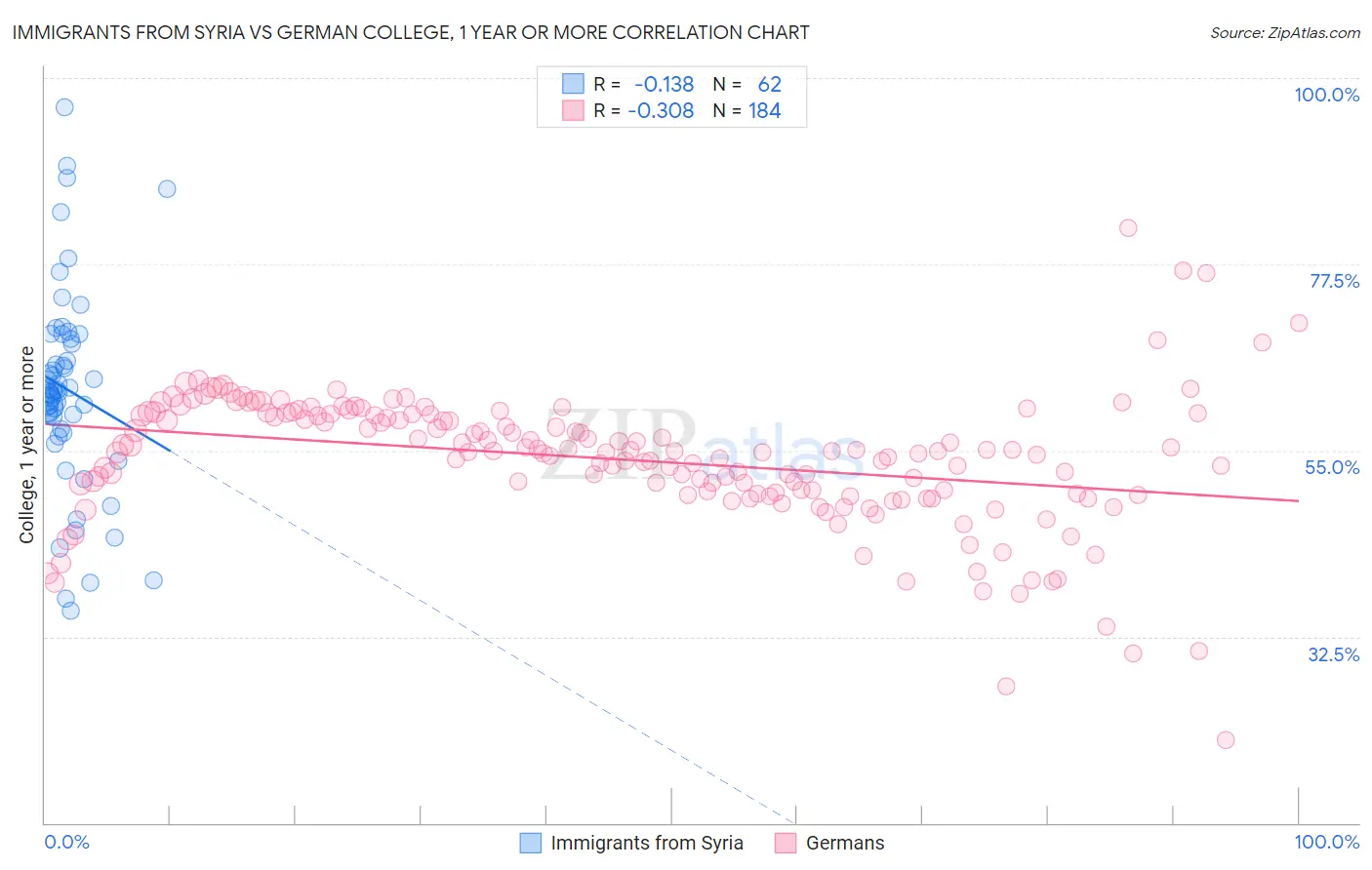 Immigrants from Syria vs German College, 1 year or more Correlation Chart