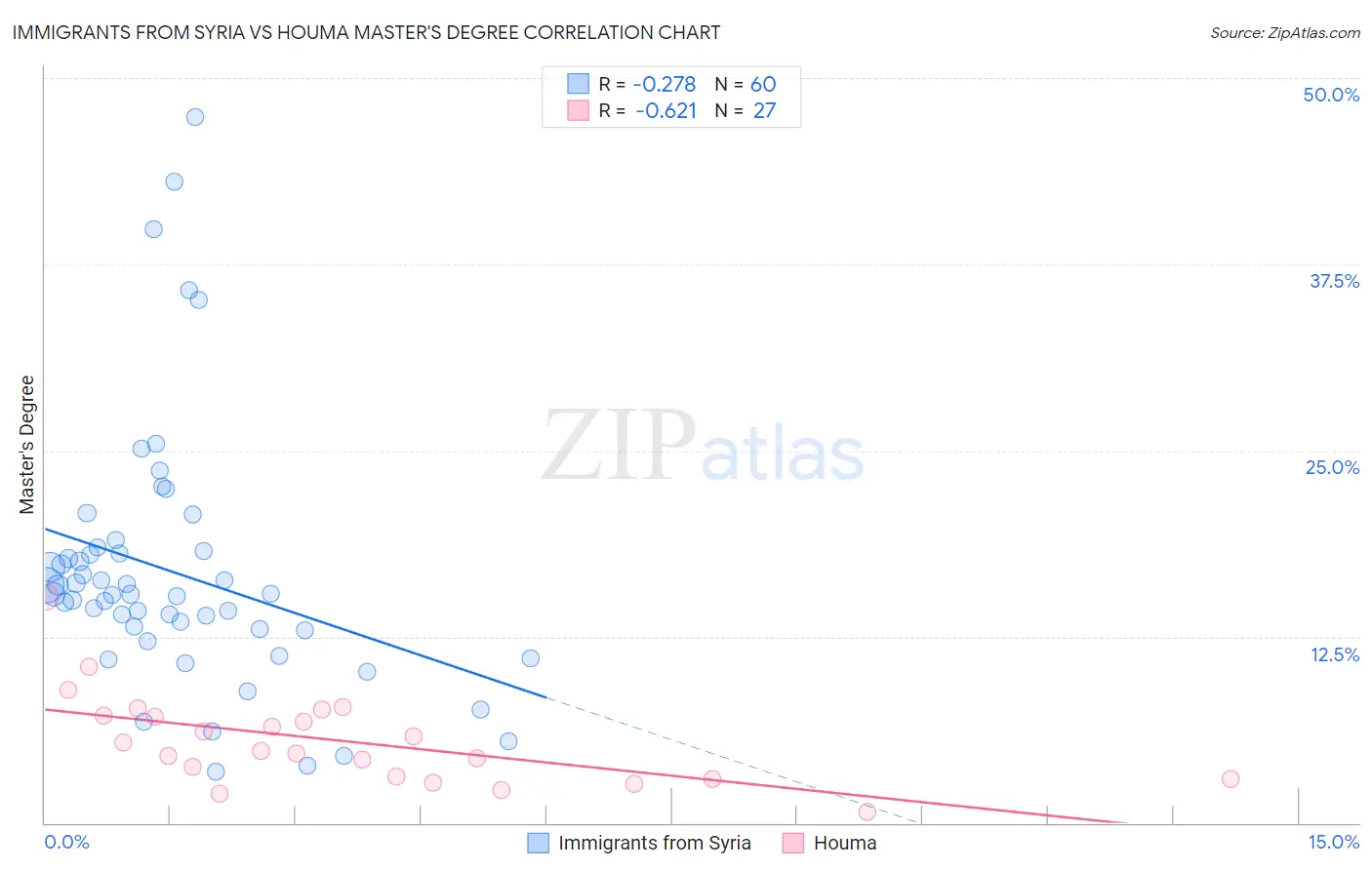 Immigrants from Syria vs Houma Master's Degree Correlation Chart