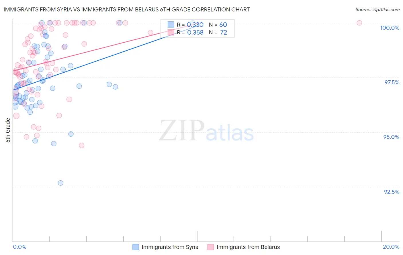 Immigrants from Syria vs Immigrants from Belarus 6th Grade Correlation Chart