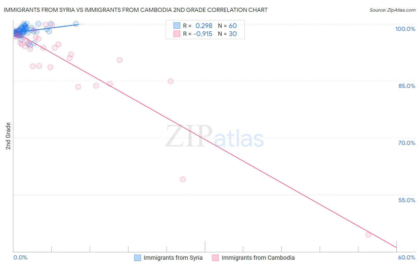 Immigrants from Syria vs Immigrants from Cambodia 2nd Grade Correlation Chart