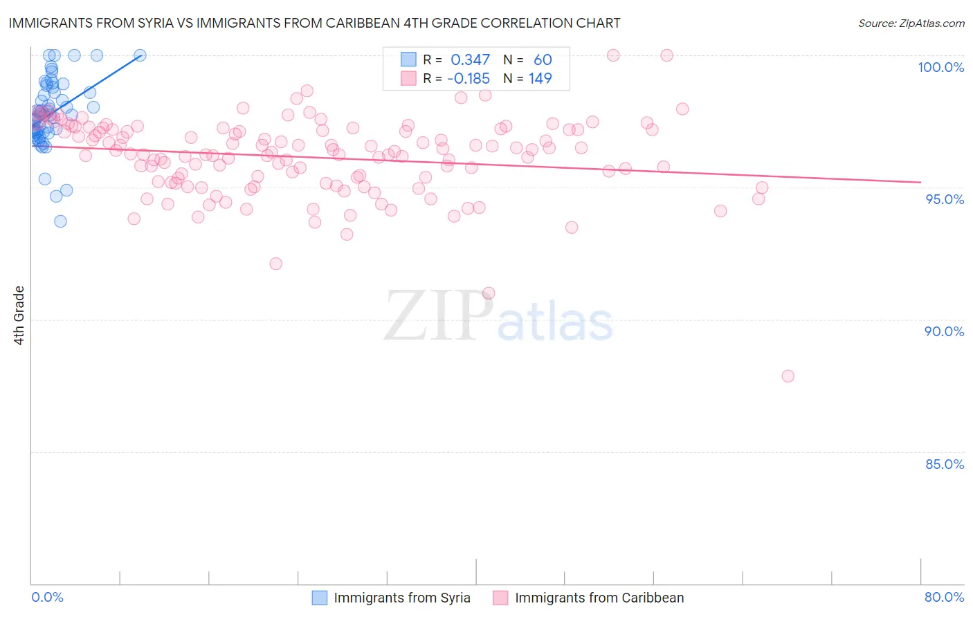 Immigrants from Syria vs Immigrants from Caribbean 4th Grade Correlation Chart