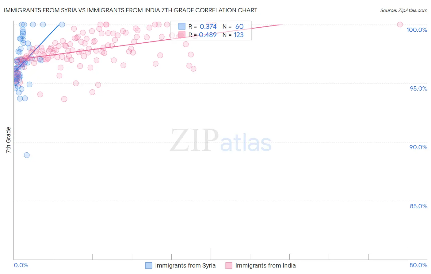Immigrants from Syria vs Immigrants from India 7th Grade Correlation Chart