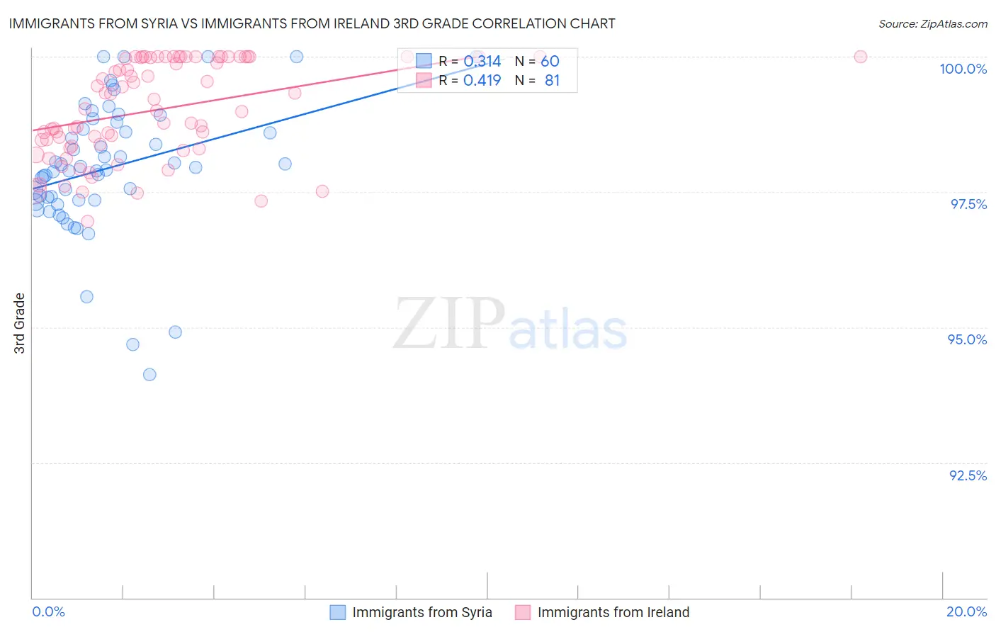Immigrants from Syria vs Immigrants from Ireland 3rd Grade Correlation Chart