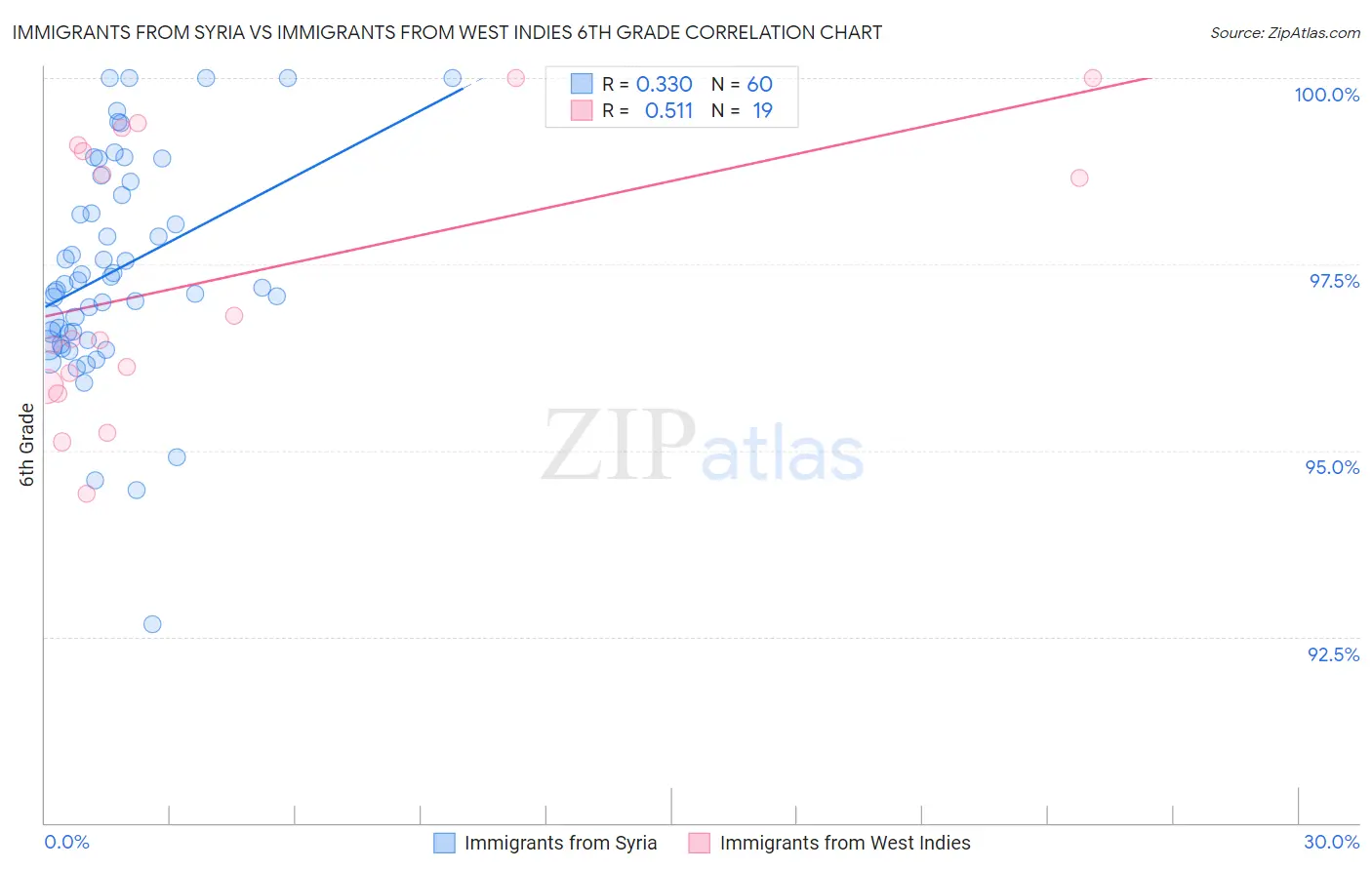 Immigrants from Syria vs Immigrants from West Indies 6th Grade Correlation Chart