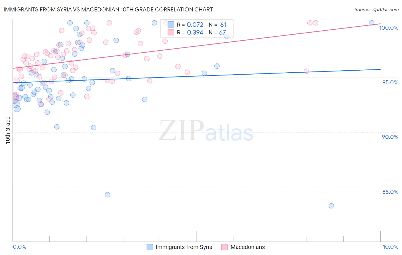 Immigrants from Syria vs Macedonian 10th Grade Correlation Chart