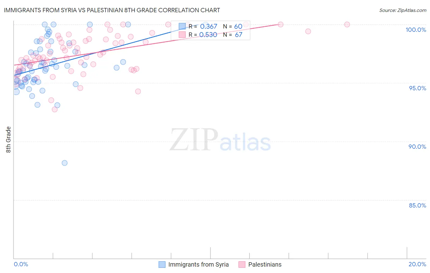 Immigrants from Syria vs Palestinian 8th Grade Correlation Chart