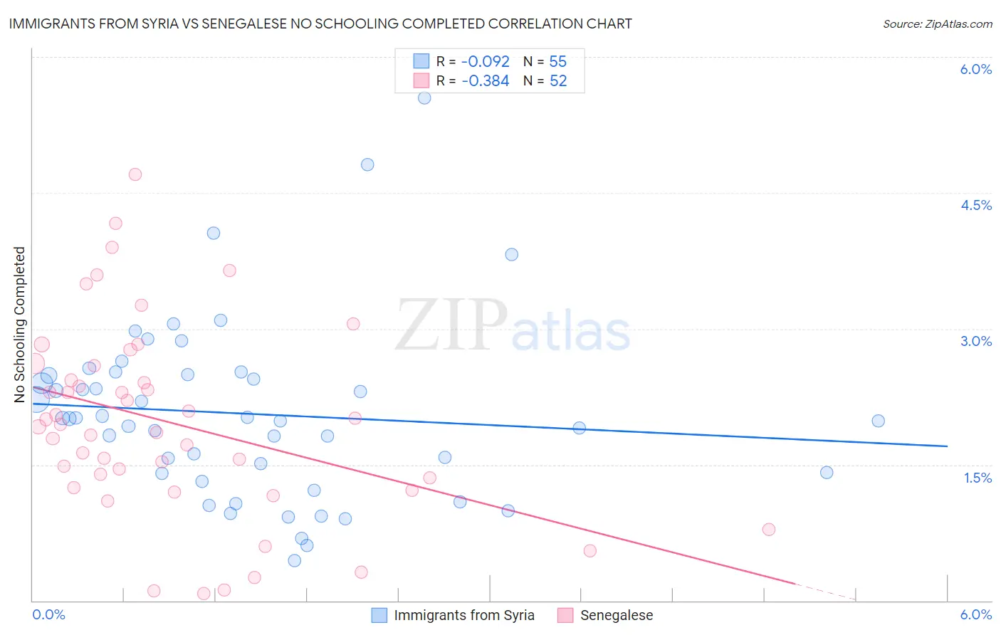 Immigrants from Syria vs Senegalese No Schooling Completed Correlation Chart