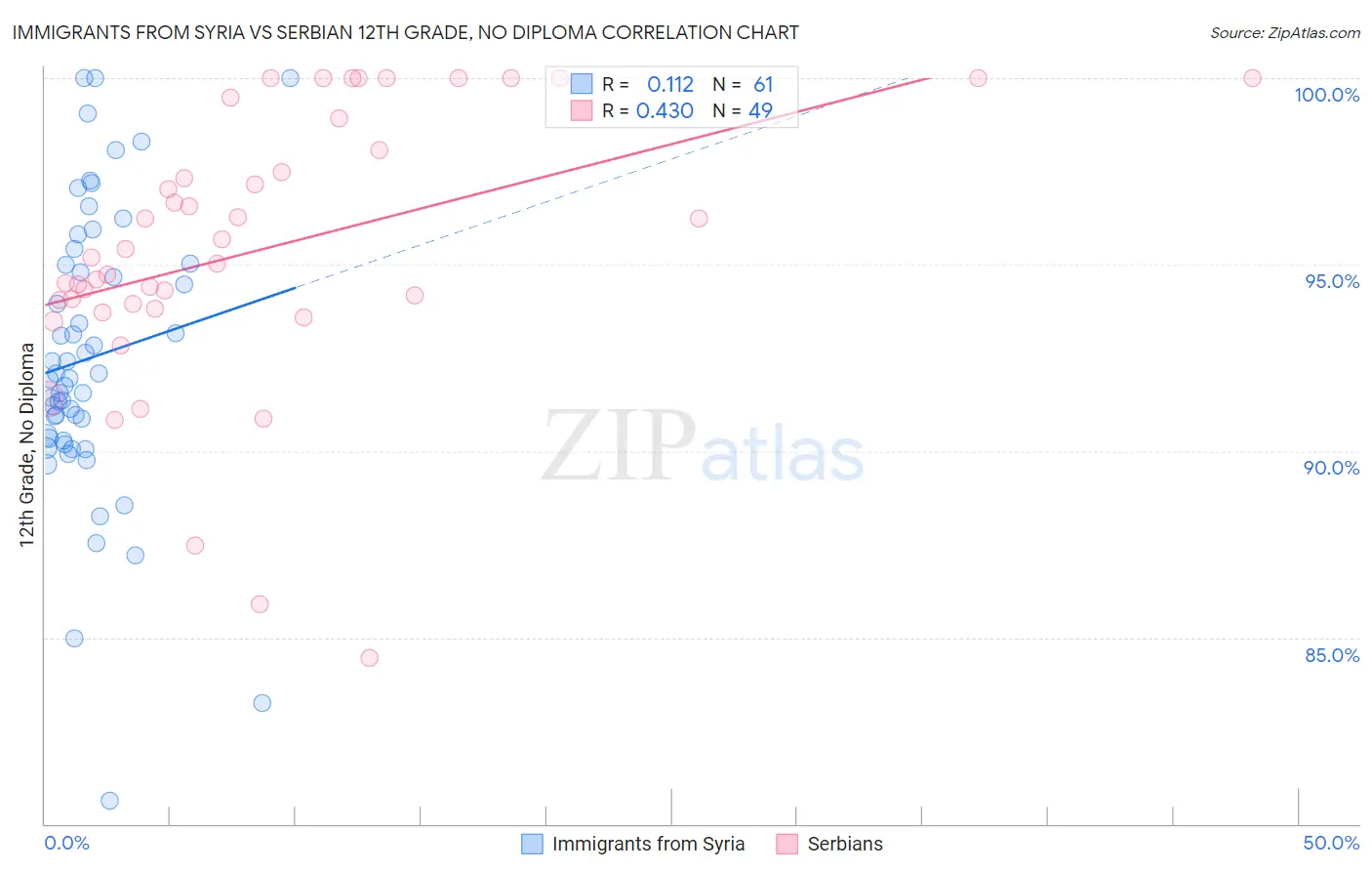 Immigrants from Syria vs Serbian 12th Grade, No Diploma Correlation Chart