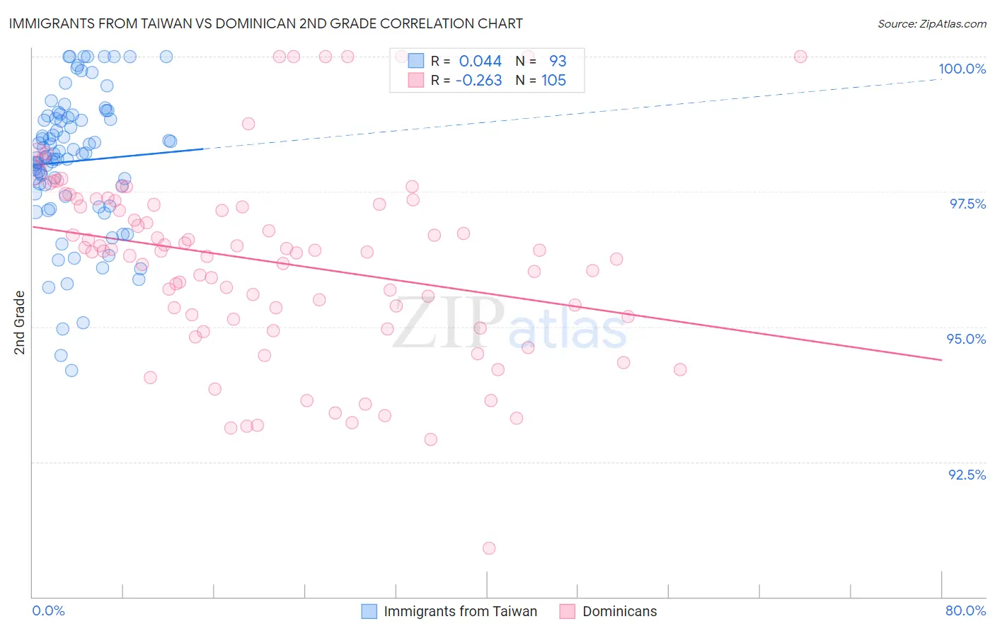Immigrants from Taiwan vs Dominican 2nd Grade Correlation Chart