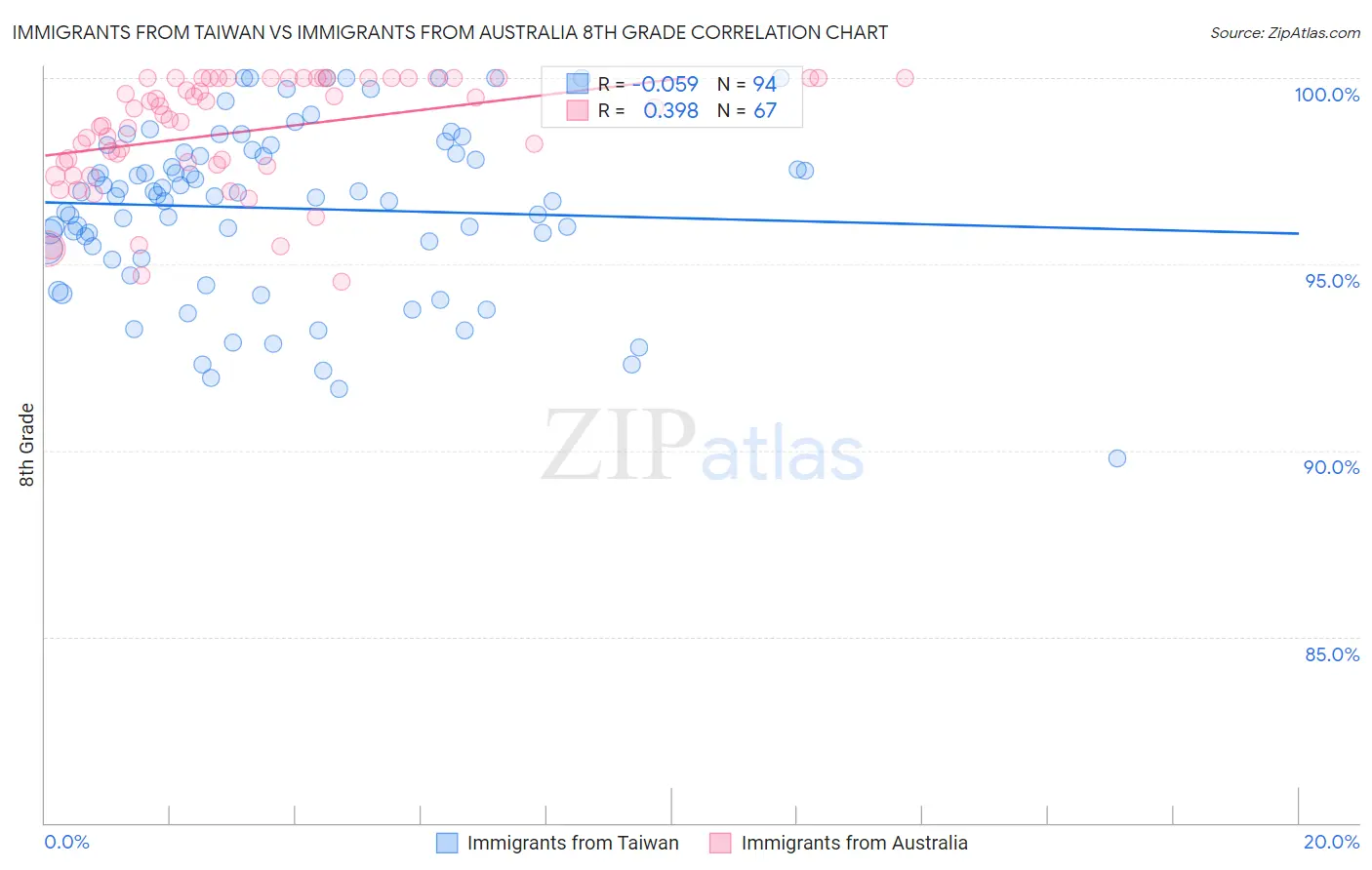 Immigrants from Taiwan vs Immigrants from Australia 8th Grade Correlation Chart