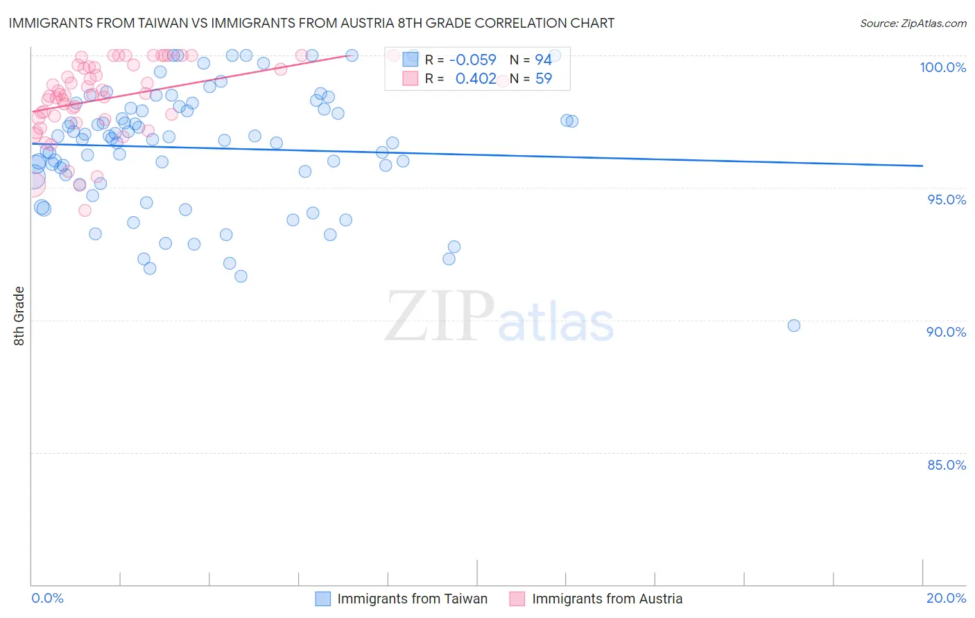 Immigrants from Taiwan vs Immigrants from Austria 8th Grade Correlation Chart