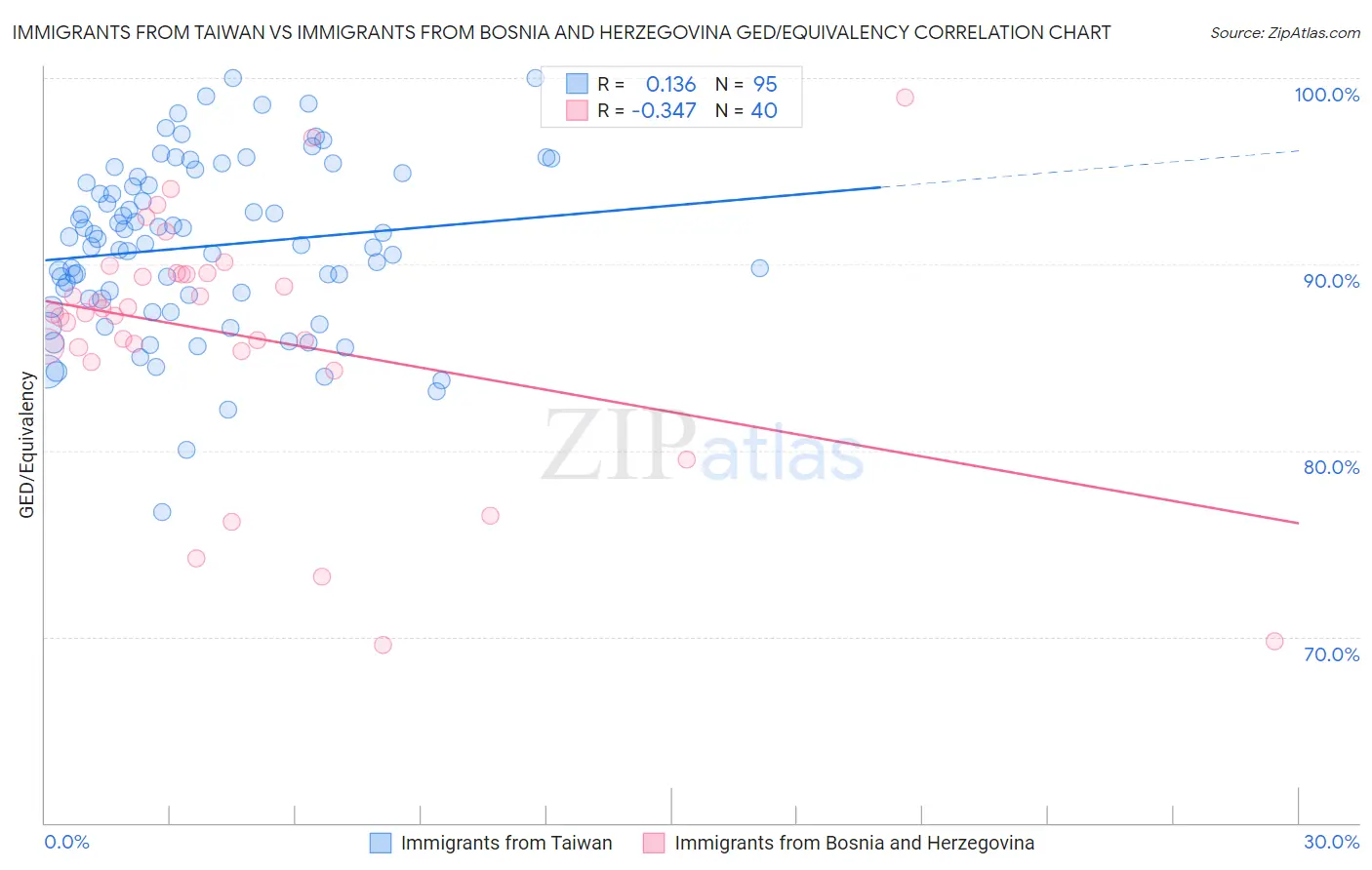 Immigrants from Taiwan vs Immigrants from Bosnia and Herzegovina GED/Equivalency Correlation Chart